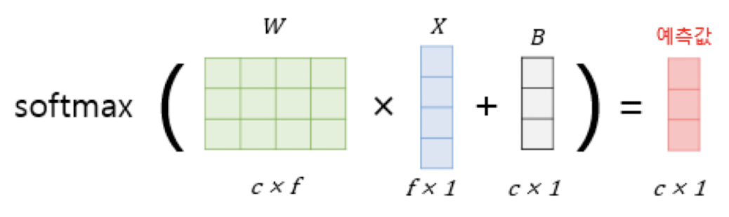 소프트맥스 회귀에서 예측값을 구하는 과정을 행렬으로 표현