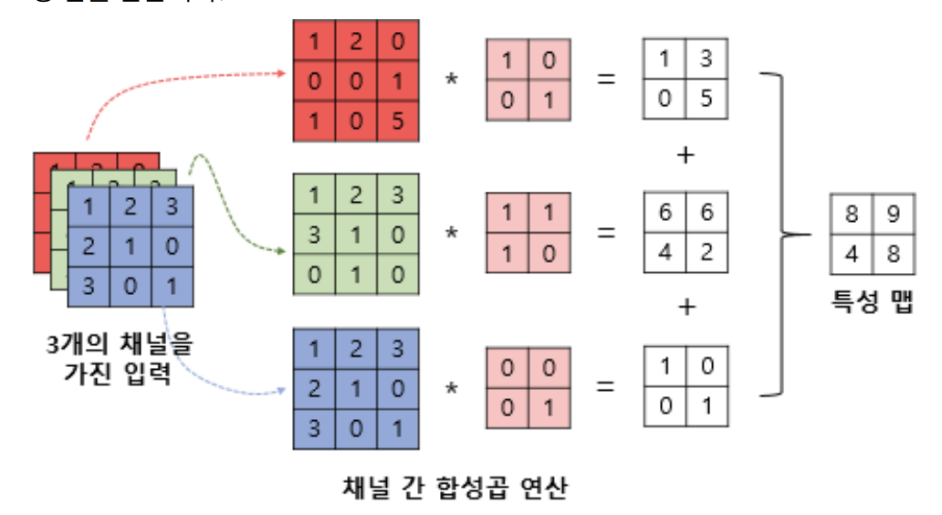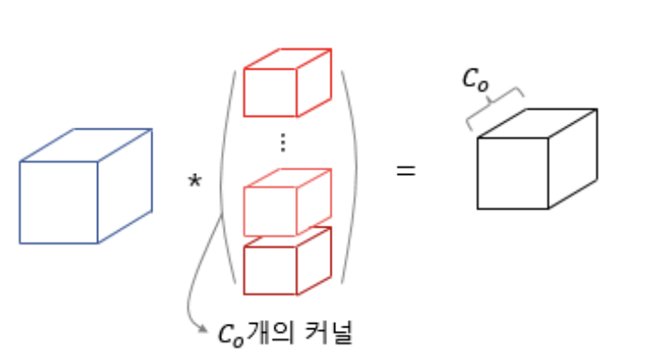 입력 하나에 대해 커널 하나 당 출력이 여러 개 생기는데, 이는 출력의 채널이 된다