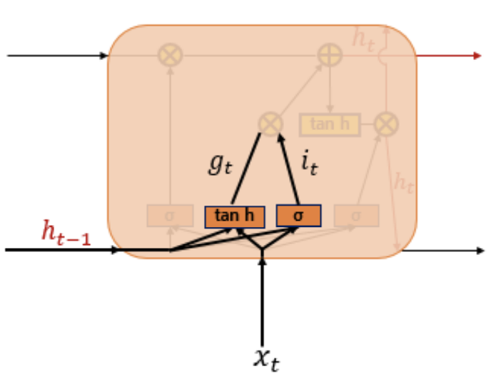 이 두개의 값을 가지고 선택된 기억할 정보의 양을 정함. 구체적인 방법은 셀 상태 수식 참고