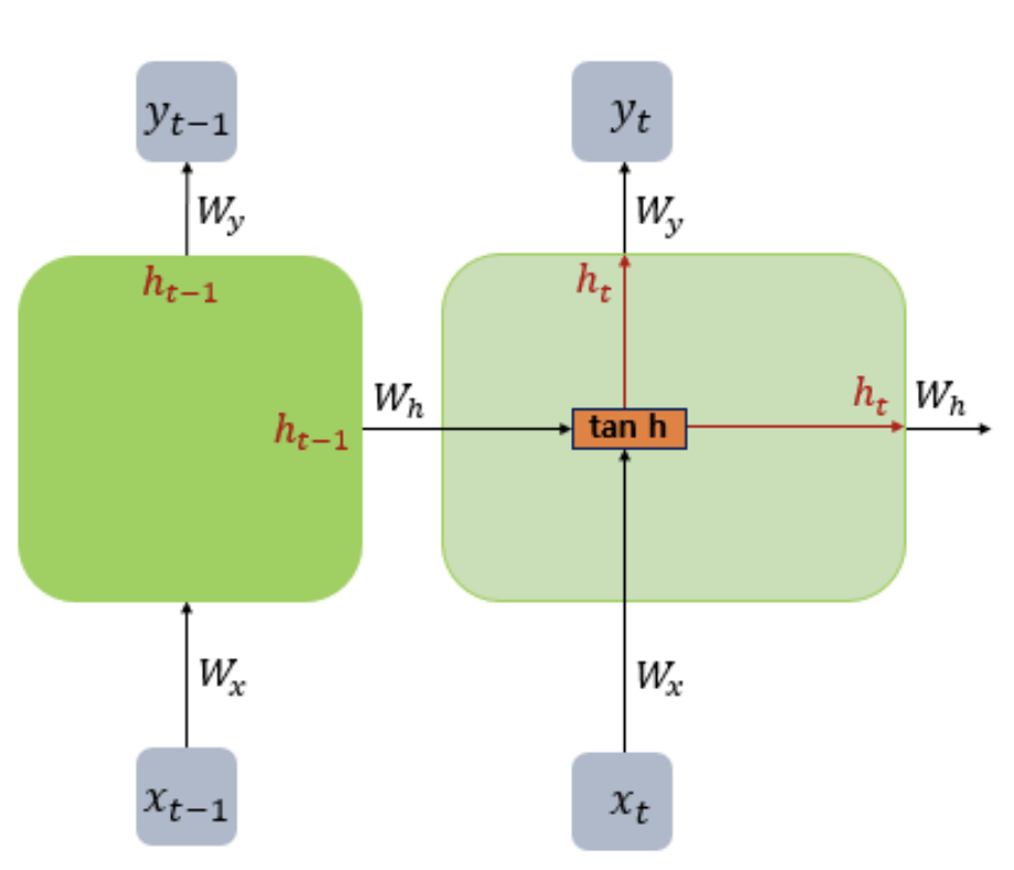 은닉상태(h)를 단기상태라고 하기도 한다. 은닉상태는 의 범위를 가진다.