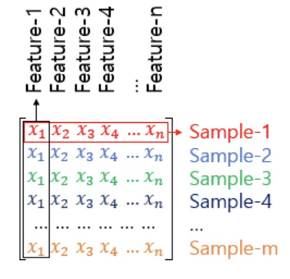 Feature각 샘플에서 y를 결정하게 하는 각각의 독립 변수 x의 개수 모델의 입력원본 링크
